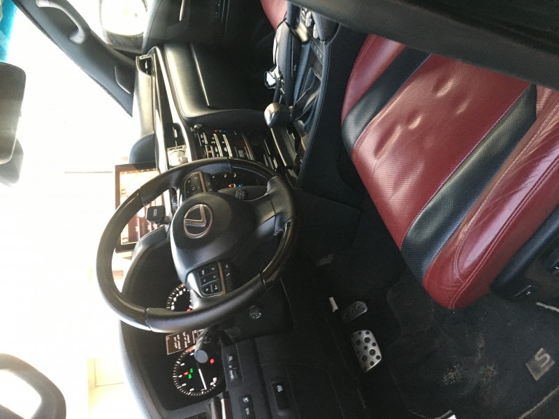 لكزس 2018 570 اللون اسود فل كامل سوبر سبورت البدي فيه رشات متفرقة و فيه ضربة في الواجهة الأمامية و تم تعديلها في الوكالة و الأيرباقات طالعة و مرجعة القير و المكينة و المحركات سليمة السوم 260 الف